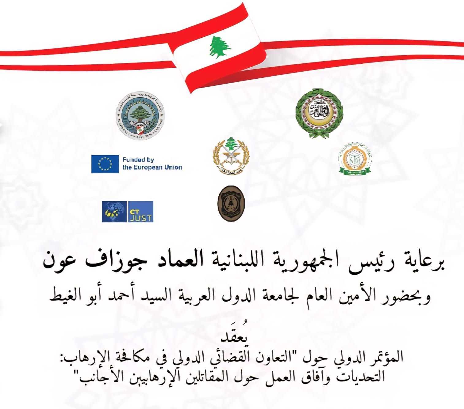The Arab Centre for Legal and Judicial Research, in cooperation with the EU-funded CT JUST project, is organising a regional conference on international judicial cooperation in combatting terrorism from 27 to 29 October in the Lebanese capital, Beirut. The conference will be held under the patronage and in the presence of His Excellency General Joseph Aoun, President of the Lebanese Republic, and His Excellency Mr. Ahmed Aboul Gheit, Secretary-General of the League of Arab States.